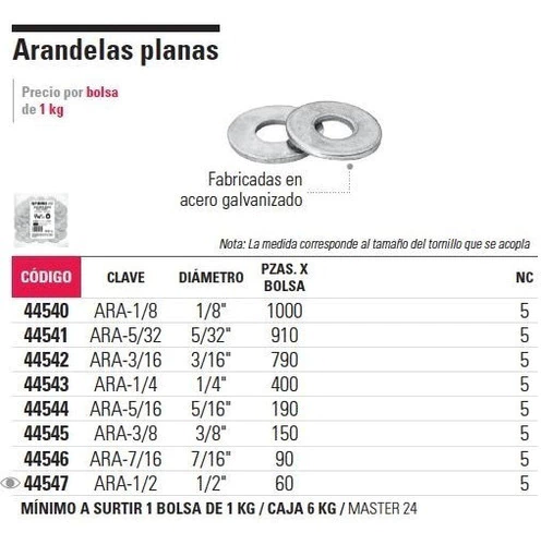 Características: El diámetro de la arandela corresponde al tamaño del tornillo al que se acopla Fabricadas en acero galvanizado --------------------------------------------------------------------- Garantía de los productos