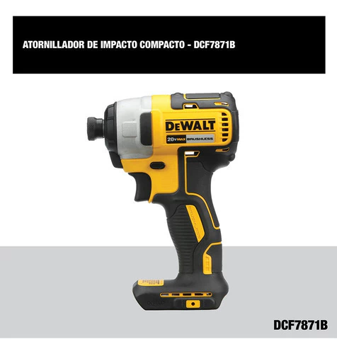 Diseño Compacto y Liviano, la llave de impacto / atornillador inalámbrico de 20V MAX* DEWALT, cuenta con Tecnología sin Carbones (BRUSHLESS), que le otorga a la herramienta una mayor eficiencia, que se traduce en más tiempo de uso y requiere menos mantenimiento.