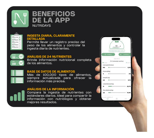 Ideal para ti Su sistema digital se destaca por su precisión, ya que brinda valores de gran exactitud con un mínimo margen de error. Por otro lado, su sensibilidad de 1 g es capaz de detectar valores muy reducidos, pudiendo medir hasta la mínima cantidad del condimento estrella que le dará la marca personal a tus comidas. Ahora con su app con la que se pueden contabilizar las calorías y cantidades, para tener una dieta más saludable.
