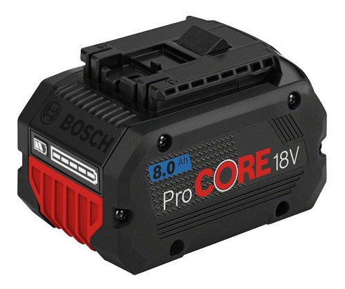 BATERIA PROCORE 18V 8.0 AH LI-ION ALTO RENDIMIENTO BOSCH -La mejor batería del planeta. -Máxima autonomía y alto desempeño en las aplicaciones súper pesadas. -Carcasa de la batería con tecnología Coolpack de última generación direcciona el calor hacia fuera de la batería aumentando la vida útil. -Terminales de cobre y soldadura láser para una máxima transferencia de energía a la herramienta. -Celdas internas mayores garantizan más potencia. -Compatible con el 100% de las Herramientas y Cargadores 18V Bosch.