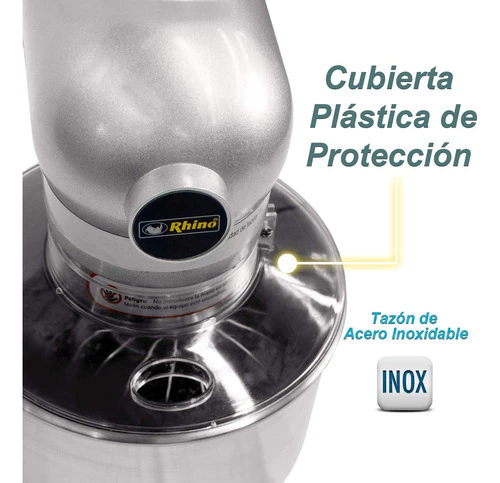 Esta batidora industrial Rhino BATI-7 es perfecta para preparar grandes cantidades de mezclas en pocos minutos. Se destaca por su potencia y capacidad de procesar ingredientes. Te permitirá acelerar la producción y aumentar la eficiencia del trabajo, ¡más preparaciones en menos tiempo!