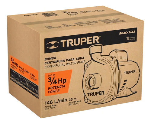 Excelente succión La bomba Truper BOAC-3/4A genera mayor presión, lo que permite que los líquidos suban hasta una altura máxima de 23m.