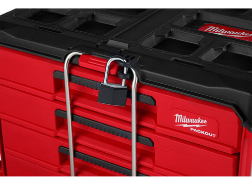 Nuestra caja de herramientas con 4 cajones PACKOUT™ posee una capacidad de peso de 50 libras y una barra de seguridad de bloqueo, lo cual le permite cerrar los cajones con candado, para mantenerlos cerrados con seguridad durante el transporte. Como parte de nuestro almacenamiento modular PACKOUT™, la caja de herramientas con 4 cajones le permite personalizar su sistema de almacenamiento para transportar y organizar fácilmente las herramientas y los accesorios. Esta caja de herramientas portátil con cajones se fabrica con polímeros resistentes a los impactos, rieles de cojinetes de bolas completamente metálicos y esquinas reforzadas de metal para obtener la máxima durabilidad en el lugar de trabajo. Además, la caja de herramientas con 4 cajones le permite personalizar la disposición de los cajones mediante divisores de ajuste rápido (incluye 4 juegos de divisores). Nuestro sistema de almacenamiento modular PACKOUT™ es el sistema de almacenamiento más versátil y duradero de la industria.