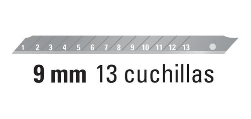 Especificaciones - Largo de cutter: 5" (13 cm) - Espesor de navaja: 0.4 mm - Empaque individual: Bolsa - Peso: 13 g - Inner: 12 - Master: 144 - Pallet: 18144