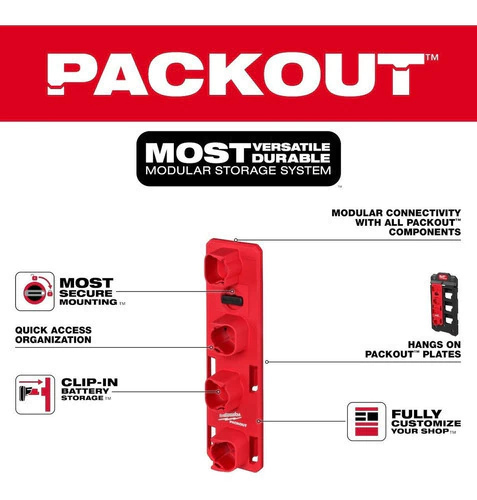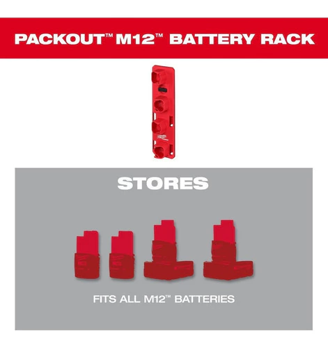 Estante para baterías M12 en placa Packout, marca Milwaukee, modelo 48-22-8338.