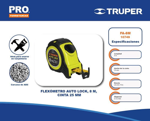 Flexómetro Auto-lock Contra Impactos 8 M Cinta 25 Mm, Truper
