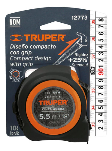 Flexómetro Compacto Contra Impactos 5.5m 25mm Truper 12773