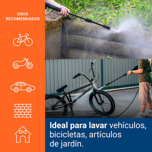 Con tu hidrolavadora puedes dejar reluciente cualquier material o superficie. Su rocío de agua de alta presión es entre diez y cincuenta veces más potente que las mangueras de jardín, lo que hace más eficaz y fácil el proceso de limpieza.