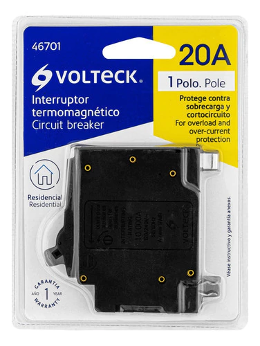 Interruptor termomagnético 1 polo 20 A, Volteck