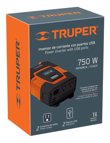 INVERSOR CORRIENTE 750 W Convierte la corriente del vehículo de 12 V c.c. a 120 V c.a. Fusible externo para fácil reemplazo Alimenta y recarga computadoras portátiles, y equipo electrónico Código: 10490