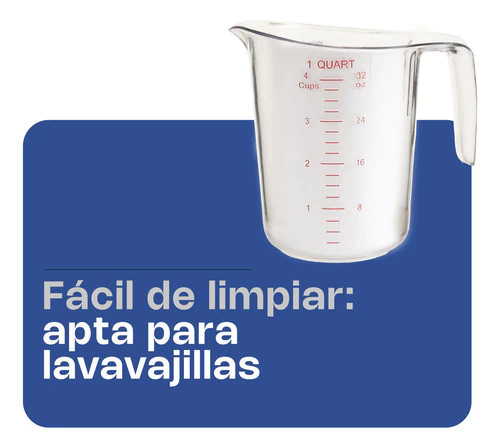 Fabricada en plástico resistente, esta jarra medidora es duradera y fácil de limpiar. Su tamaño compacto, con un diámetro de 12 cm y una altura de 15.5 cm, la hace perfecta para almacenar en cualquier espacio de tu cocina. A pesar de su robustez, no es apta para microondas, por lo que se recomienda su uso para medir y mezclar ingredientes a temperatura ambiente.