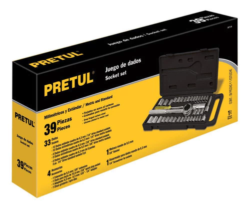 JUEGO AUTOCLE 39 PZ - Juego de herramientas para mecánico, 39 piezas, Pretul. - Estuche plástico. - Piezas forjadas de acero con acabado cromado resistentes a la corrosión. - Marcado para rápida identificación. - Código: 24220