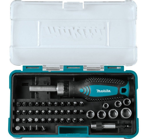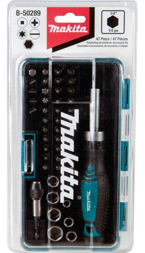 PRODUCTIVIDAD : Incluye un surtido de Puntas y Dados Phillips, Torx®, Ranuradas, Hex y Cuadrada. CONVENIENCIA : Atornillador de matraca que funciona con brocas de hasta 1''. COMPATIBILIDAD : Portabrocas de 1/4'' Hex de Cambios Rápidos se adapta a la mayoría de los atornilladores de impacto. PORTABILIDAD : Conveniente estuche de almacenamiento. INCLUYE : Juego de 47 Pzas. de Brocas y Matraca.