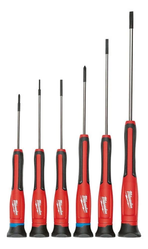 Los destornilladores de precisión Milwaukee® cuentan con un núcleo totalmente metálico para una resistencia de hasta 4 veces más fuertes que los de la competencia Las puntas maquinadas con precisión brindan un ajuste seguro y una larga vida útil. El diseño de alcance extendido y los vástagos más largos brindan visibilidad y alcance mejorados. Las tapas traseras giratorias de 360 grados ofrecen mayor control, capacidad de conducción y ajuste. Además, las marcas codificadas por colores permiten a los usuarios identificar fácilmente la herramienta en el lugar de trabajo. Los vástagos cromados aumentan la vida útil de la herramienta al reducir la corrosión y brindar una protección superior contra la oxidación. Estuche duradero con cremallera robusta