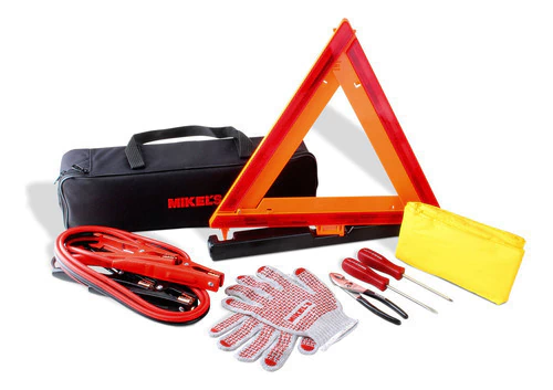 INCLUYE: ESTUCHE TRIANGULO REFLEJANTE 17´´ CABLES PASA CORRIENTE 2.4M CALIBRE 10 4 LLAVES ESPAÑOLAS: 8 Y 9MM, 10 Y 11MM, 12 Y 13MM, 14 Y 15MM PINZA DE MECÁNICO DESARMADOR PLANO 6´´ X 100MM DESARMADOR DE CRUZ (PHILLIPS) 6´´ X 100MM GUANTES DE ALGODÓN CON PUNTOS DE PVC IMPERMEABLE