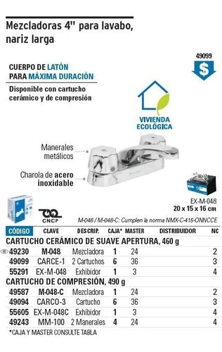 Usos: Para mezcladoras modelos M-048, M-048-C, M-050, M-050-C, M-060, F-319, F-318 y F-317 --------------------------------------------------------------------- Garantía de los productos