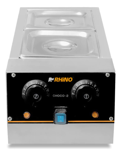 MODELO CHOCO-2 Potencia 1040 W Voltaje 110-127V Rango de temperatura 30 °C a 110 °C Capacidad de depósitos (2) 1.5 litros cada uno Material de los depósitos Acero inoxidable antiadherente Material de la carcasa Acero inoxidable
