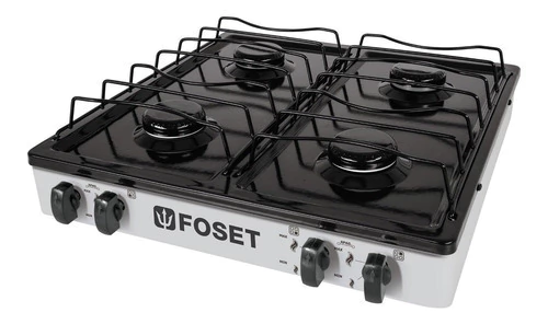 Especificaciones: Altura: 11 cm Base: 55 cm Capacidad térmica x quemador: 4,100 kJ/h Color: Blanco Empaque: Caja Fondo: 48 cm Número de quemadores: 4 Peso: 3.7 kg Presión de GAS: 2.74 kPa