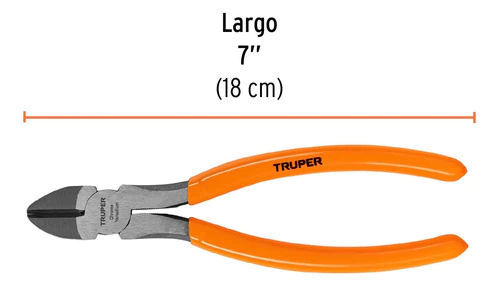 PINZA CORTE DIAGONAL 7'' Pinza corte diagonal 7", mango de PVC Fabricadas en acero al cromo vanadio, 2x más resistentes al desgaste que las de acero al carbono Código: 17313