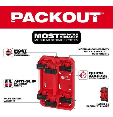 Portaherramienta con mango para Packout, marca Milwaukee, modelo 48-22-8349. Compatible con placas PACKOUT (48-22-8485, 48-22-8486, 48-22-8487) para colgarse.