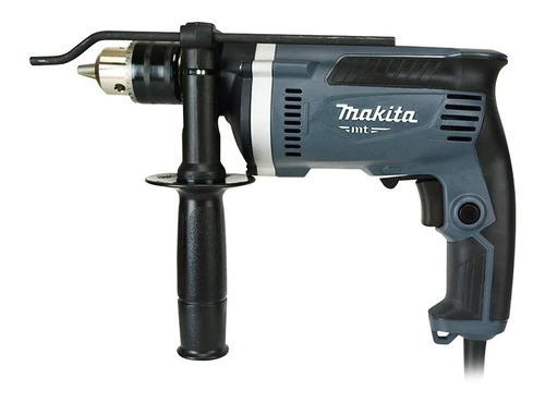 Rotomartillo Makita Taladro 710W VVR 1/2'' MHP161 M8100G. Con una frecuencia de 60 Hz. Goza de distintas capacidades, una de ellas es de 16 mm (5/8''), capacidades en madera de 30 mm (1 3/16'') y capacidades en acero de 13 mm (1/2''). La longitud total es de 296 mm (11 5/8'').