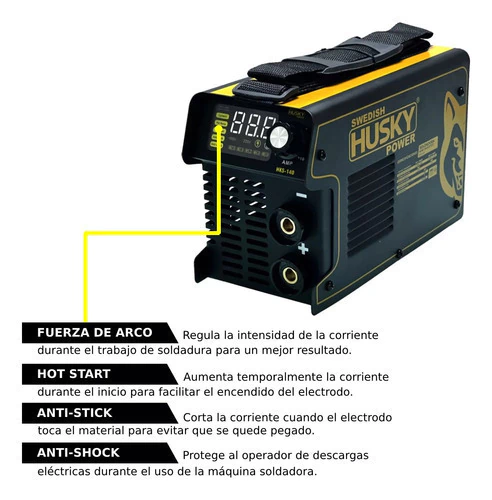 Soldadora Inversora Mini HKS140 BY HUSKY - Es suficientemente poderosa para realizar trabajos de herrería con electrodos 6013 de hasta 1/8” con un ciclo de trabajo del 60% o de 3/32” al 100%. - Realiza cordones de calidad y muy buen acabado. - Ideal para trabajos ligeros de herrería, artistas y proyectos caseros con electrodo revestido.