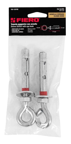TAQUETE EXPANSIVO CON ARMELLA CERRADA, 12X70MM, BOLSA 2 CÓDIGO: 47562 CLAVE: TAE-12X70C