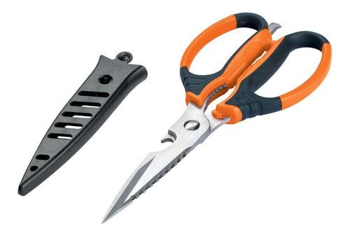 Tijera multiusos para cocina, 8", acero inoxidable -6 funciones en 1 (Cortar, destapador, descamador, abrelatas, cascanueces y prensa ajos) -Hojas en acero inoxidable para mayor resistencia a la corrosión -Cuerpo desmontable -Mango ergonómico con TPR antiderrapante y suave al tacto -Peso 125 g Incluye -Funda protectora --------------------------------------------------------------------- Garantía de los productos