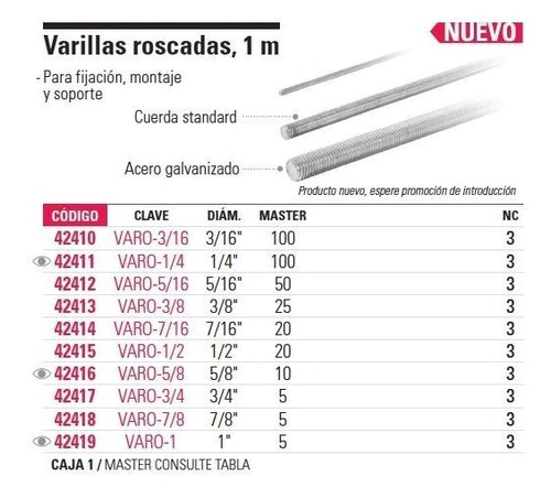 VARILLA ROSCADA 3/4'', 1 mt Código: 42417